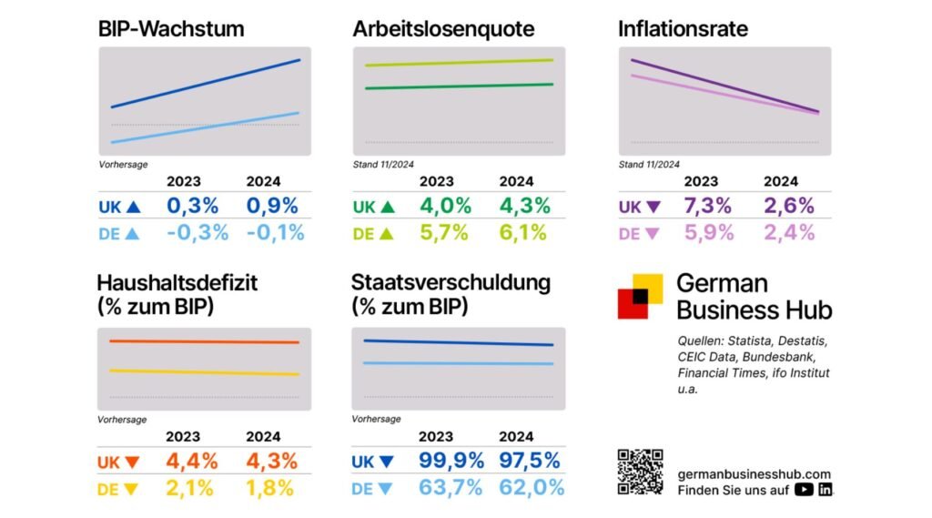 Dennoch gehen die Ökonomen davon aus, dass die britische Wirtschaft im Jahr 2025 ein Wachstum von 1,3 Prozent erreichen wird, nachdem das Wachstum in 2024 wohl bei 0,9 Prozent lag. Obwohl dies Großbritannien noch weit von den USA und Kanada entfernt lassen würde, wäre es dennoch der Spitzenreiter unter den großen europäischen Volkswirtschaften.